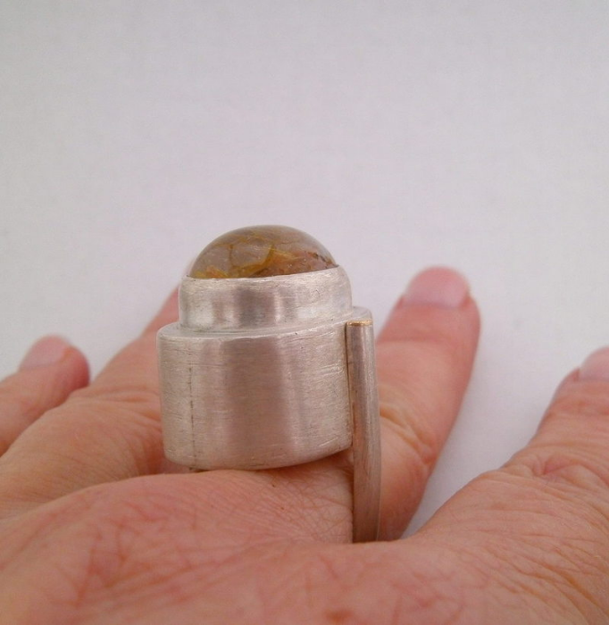 Dieser Ring ist (unscheinbar) sehr bequem. Jeder Ring ist ein Einzelstück in Schweiß- und Löttechnik gefertigt. Der Ring sitzt locker auf der Hand, daher spührt man den wenig. Der Ring an Seerosenblätter die auf dem Wasser schwimmen.